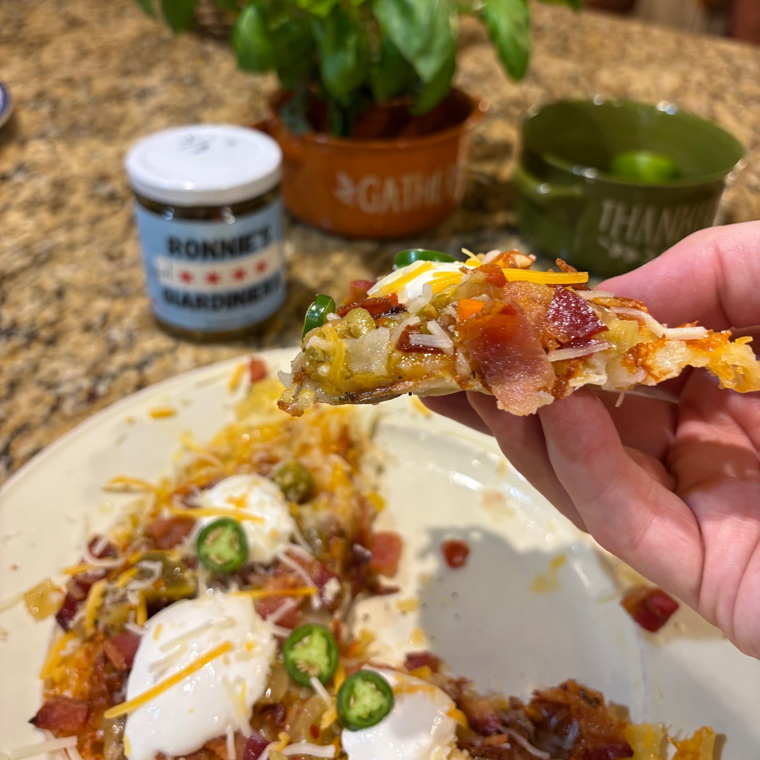 Crispy Loaded Baked Potato Skin Waffles with Giardiniera