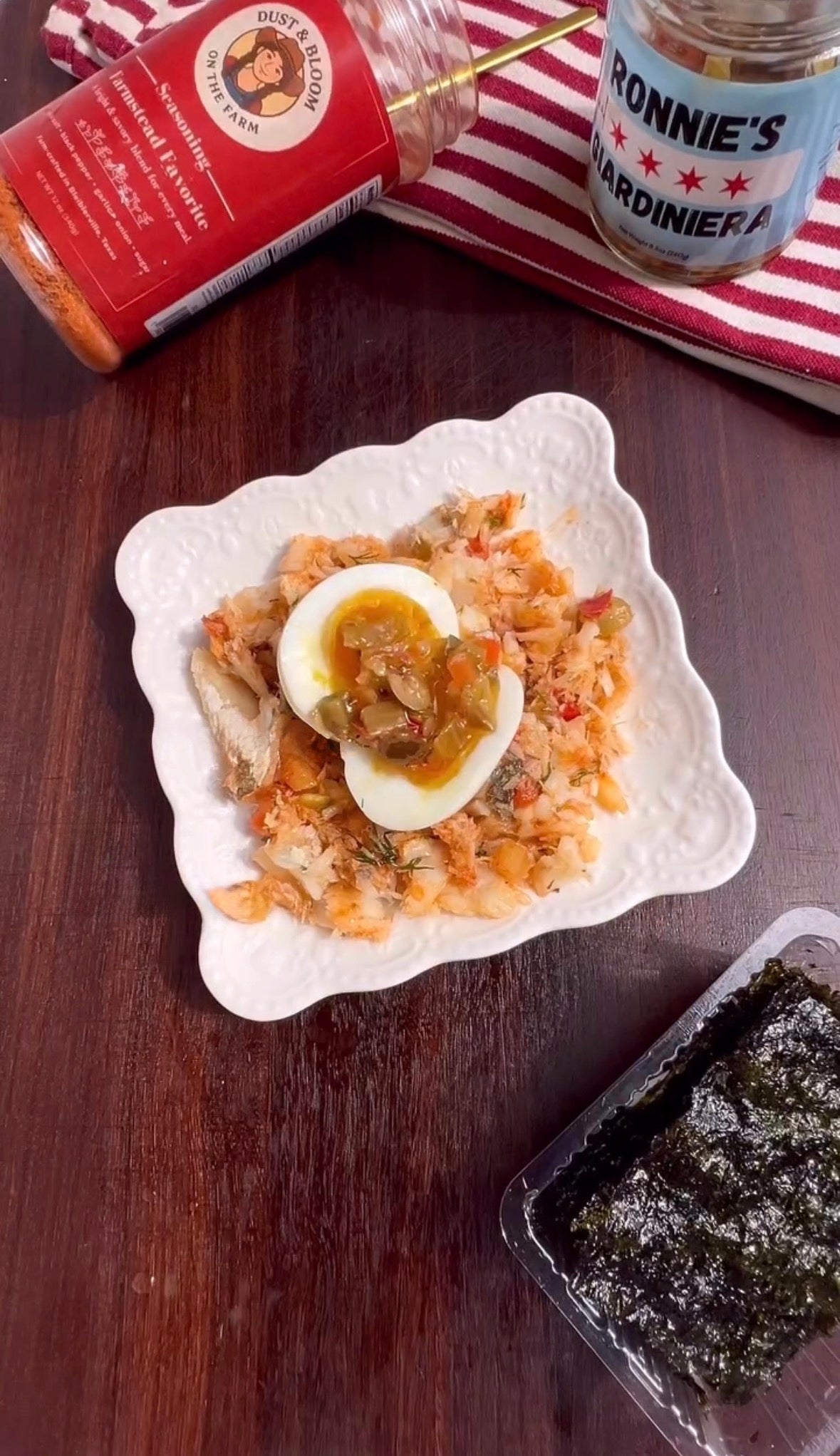 Tinned cod with soft boiled egg and giardiniera is a bold, no-nonsense dish that hits every note—rich, briny, spicy, and bright. The tender flakes of cod bring deep ocean savoriness, while the jammy yolk from the soft boiled egg adds a silky, luxurious texture that ties it all together. Then comes the giardiniera, cutting through with crunch, heat, and a sharp bite that wakes everything up. Piled onto toasted bread or eaten straight from the bowl, it’s a simple combination that feels unexpectedly elevated—comfort food with serious attitude.