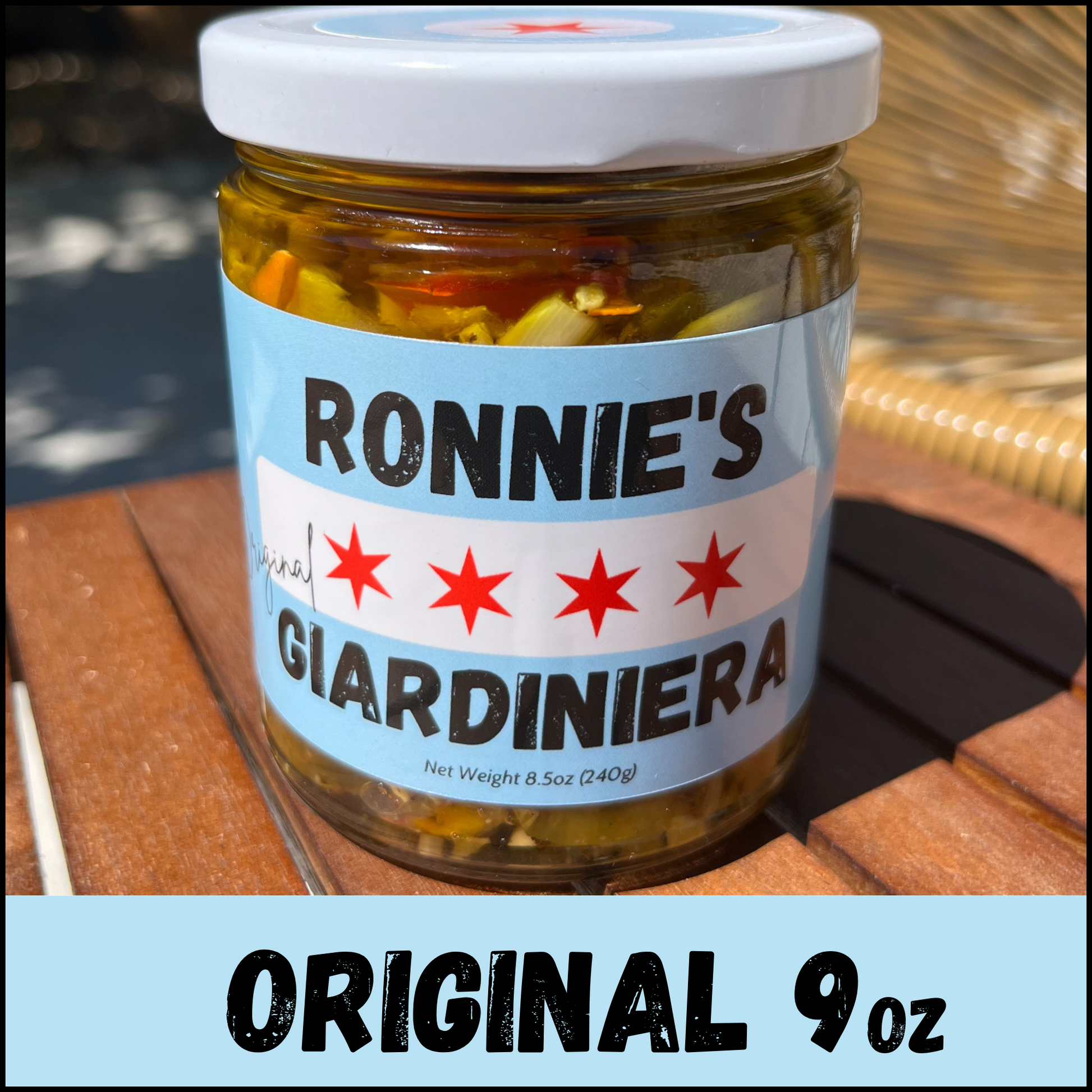 The best selling products from Ronnie's Giardiniera... Original & Rovente Giardiniera, BlackStraw Jam, Hats, Bags, Stickers, Chicago-Style Earrings and more!